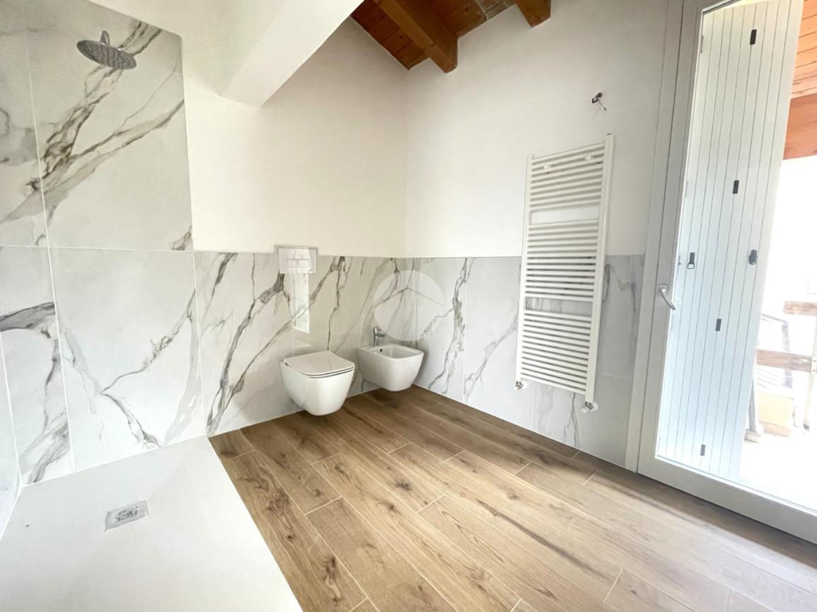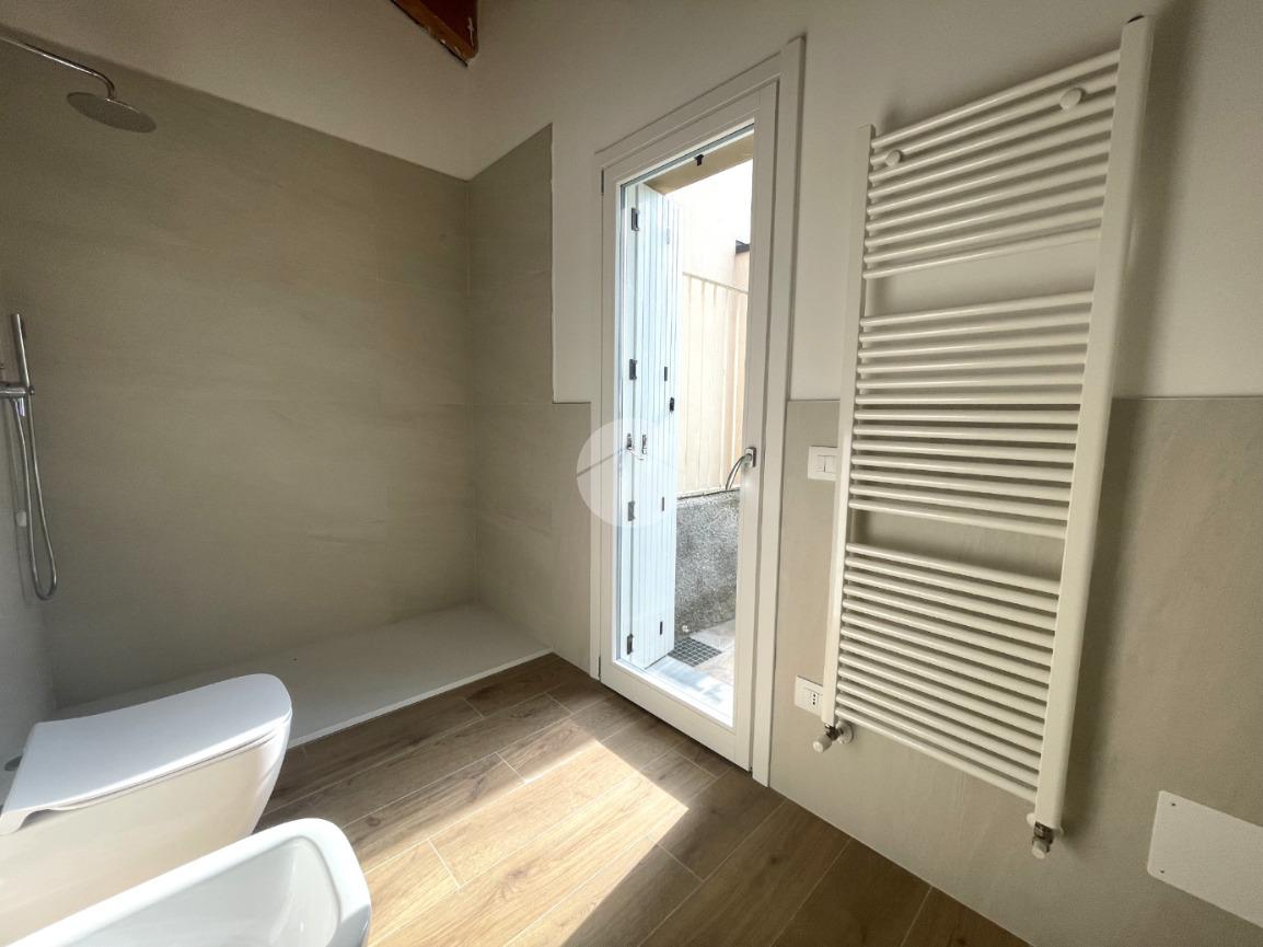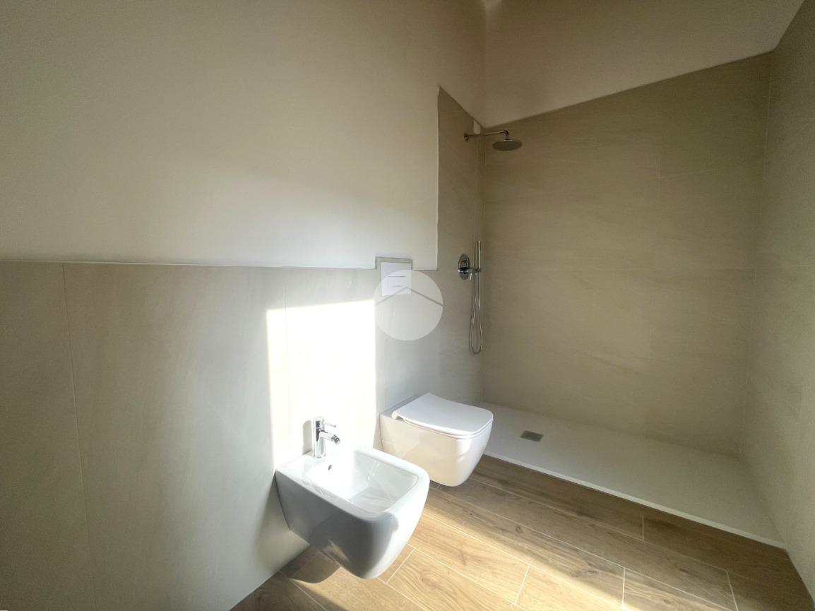 Sempre al piano terra è presente un comodo bagno finestrato, realizzato con materiali moderni e linee essenziali.
